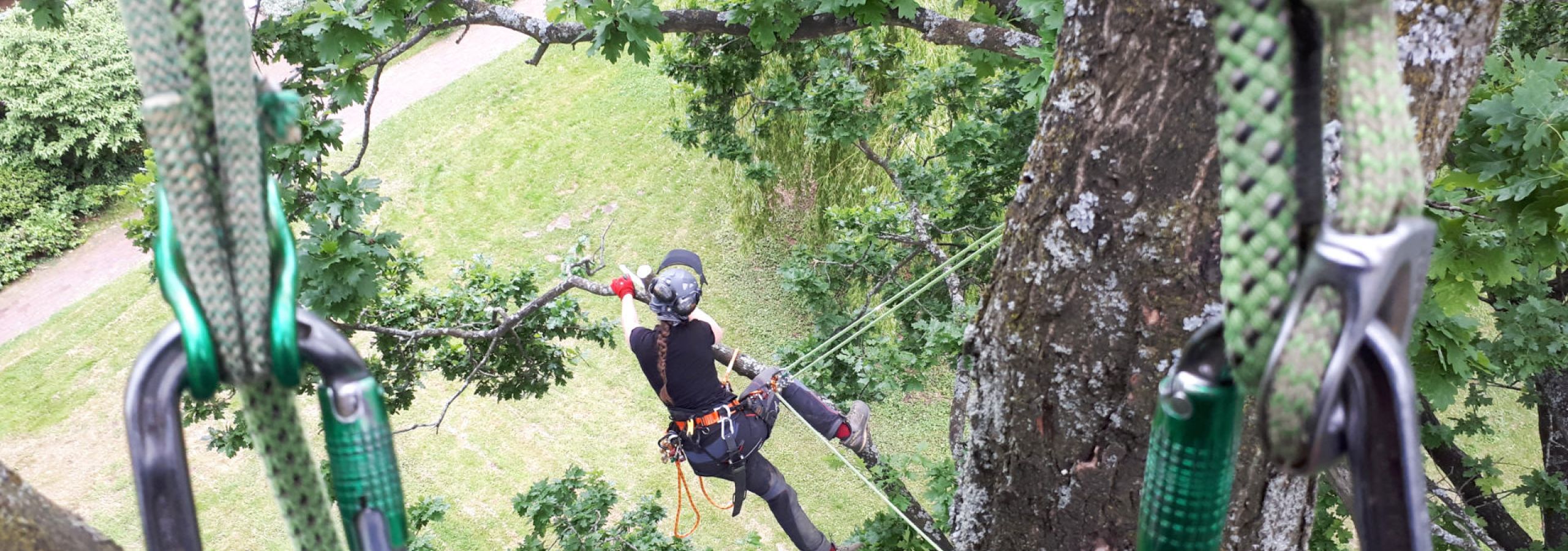 Ich war auf der Suche nach einem neuen Beruf und Baumpflegerin war eine der Optionen. Eine reine Ausbildung im Garten- und Landschaftsbau hätte ich wohl nicht angefangen, um Baumpflegerin zu werden, aber ich wollte nicht schon wieder quer einsteigen. Die kombinierte Ausbildung hat sich da angeboten. Schlussendlich gab es aber zwei Gründe, die für mich nach dem Praktikum ausschlaggebend waren. Erstens habe ich Spaß an der körperlich herausfordernden Arbeit und die Aussicht, in jede Menge Bäume klettern zu dürfen, hat mich motiviert. Zweitens war es spürbar, dass jeder Einzelne im Team ein echtes persönliches Interesse hat, seinen Beitrag zu guter Baumpflege zu leisten und aber auch genauso Wert legt auf gegenseitige Rücksichtnahme, offenen Umgang und gute Stimmung. Das hat mich nachhaltig beeindruckt und tut es immer noch.