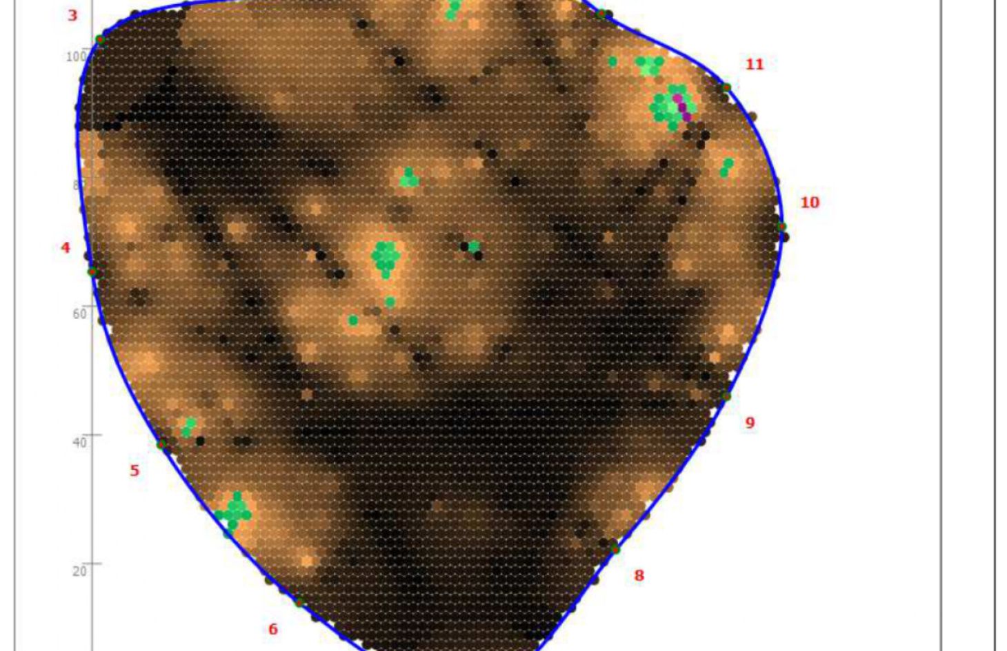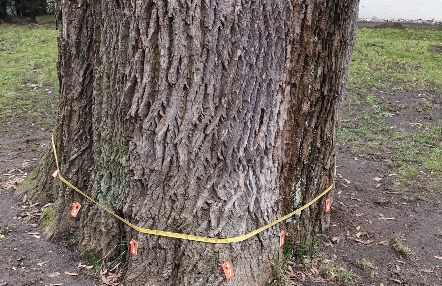 Um sicher zu gehen, dass der Baum eine gute Grundsubstanz aufweist, wurde er mittels Schalltomographie gemessen. Das Ergebnis ist sehr gut, der Stamm ist vollholzig, ohne den Hinweis auf eine Fäule.